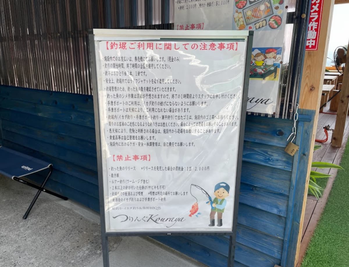 海上釣り堀は、3時間制で追加料金で延長も可能です。釣りイカダは予約なくても空いていればOK!17:00までです。各種レンタルもあります。